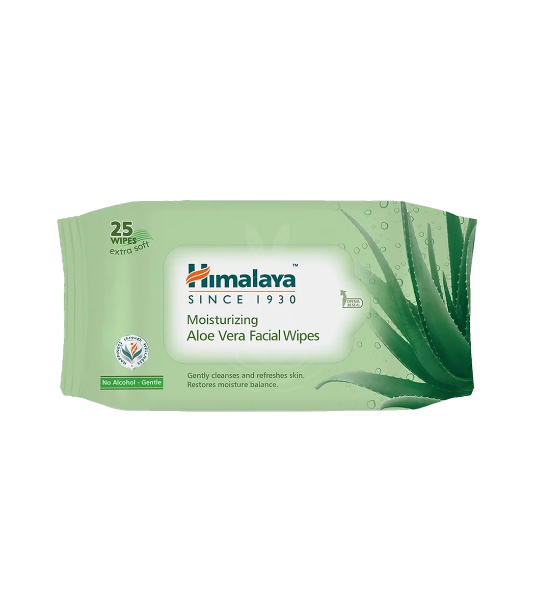 Вологі серветки для обличчя з Алое Вера від Himalaya забезпечують швидке очищення шкіри та зволоження. Формула з натуральними екстрактами алое вера сприяє зволоженню і відновленню шкіри, надає відчуття свіжості та чистоти без використання води.