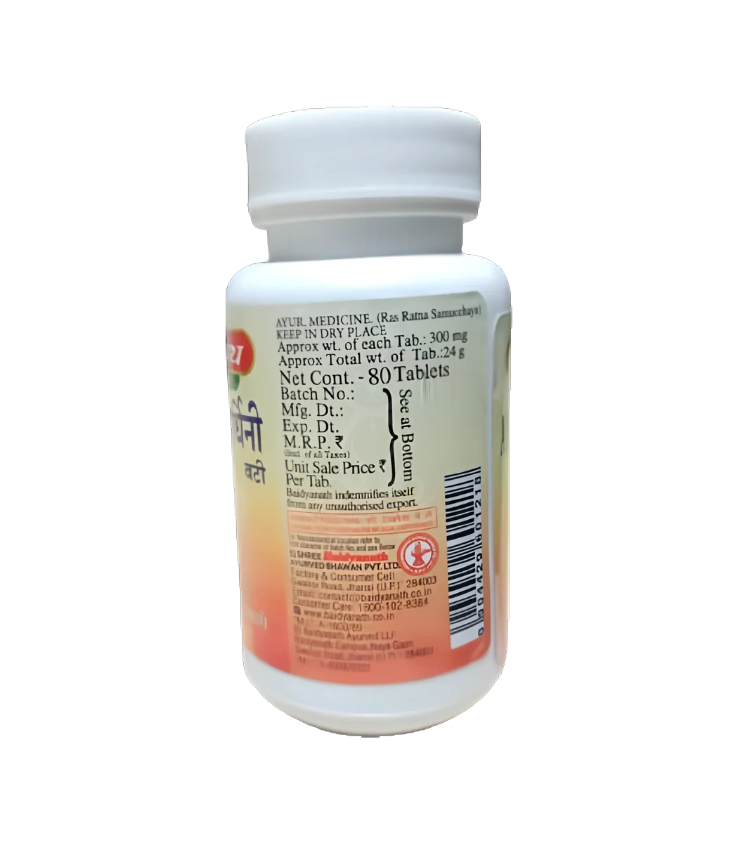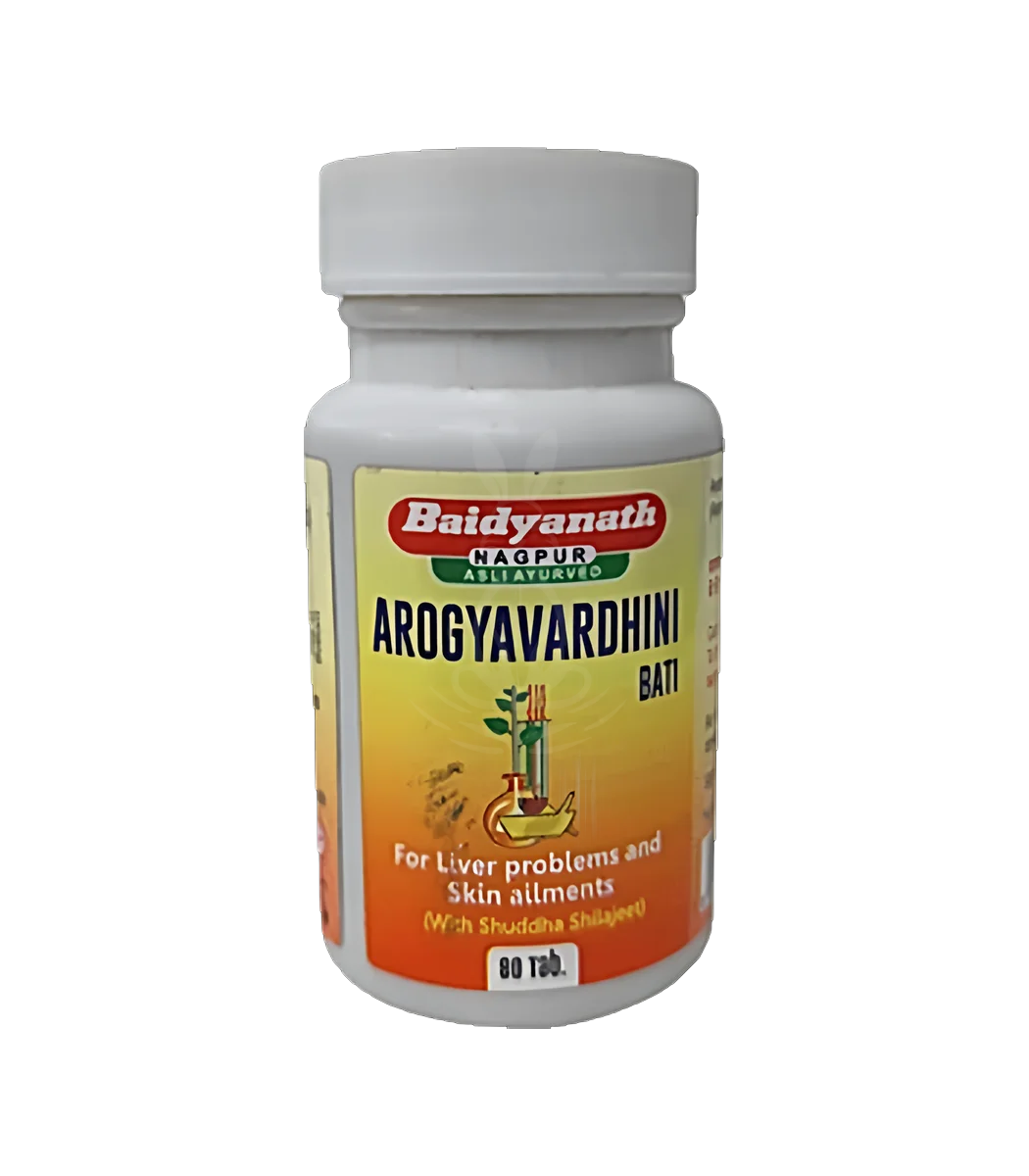 Arogyavardhini від Baidyanath — класична аюрведична формула в таблетованій формі, спрямована на підтримку функцій печінки, покращення травлення та очищення крові. Препарат застосовується при хронічних захворюваннях печінки, порушеннях травлення, шкірних проблемах та загальних метаболічних розладах.