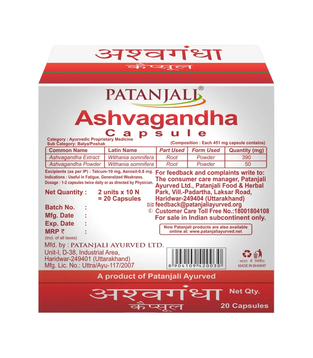 Ashwagandha від Patanjali – це аюрведична добавка на основі кореня ашваганди, яка відома своїми властивостями покращувати адаптацію організму до стресу. Засіб сприяє покращенню загального здоров’я, підвищує енергію та підтримує баланс дош.