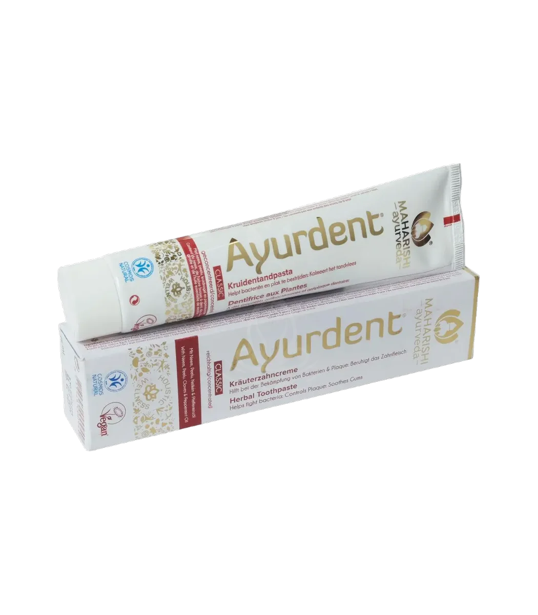 Ayurdent від Maharishi Ayurveda — аюрведична зубна паста, створена для щоденної гігієни ротової порожнини з використанням традиційних трав і мінералів. Надає протизапальний, антисептичний та освіжаючий ефекти для ясен і зубів.