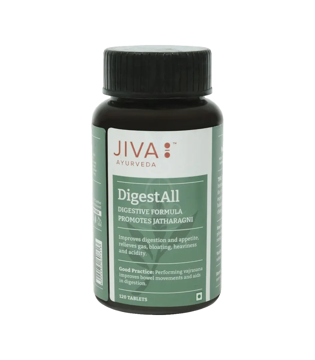 Digest All від Jiva – це аюрведичний препарат, створений для підтримки здорової роботи травної системи. Засіб допомагає покращити процес травлення, зменшити здуття та дискомфорт у шлунку, а також запобігти розладам травлення.