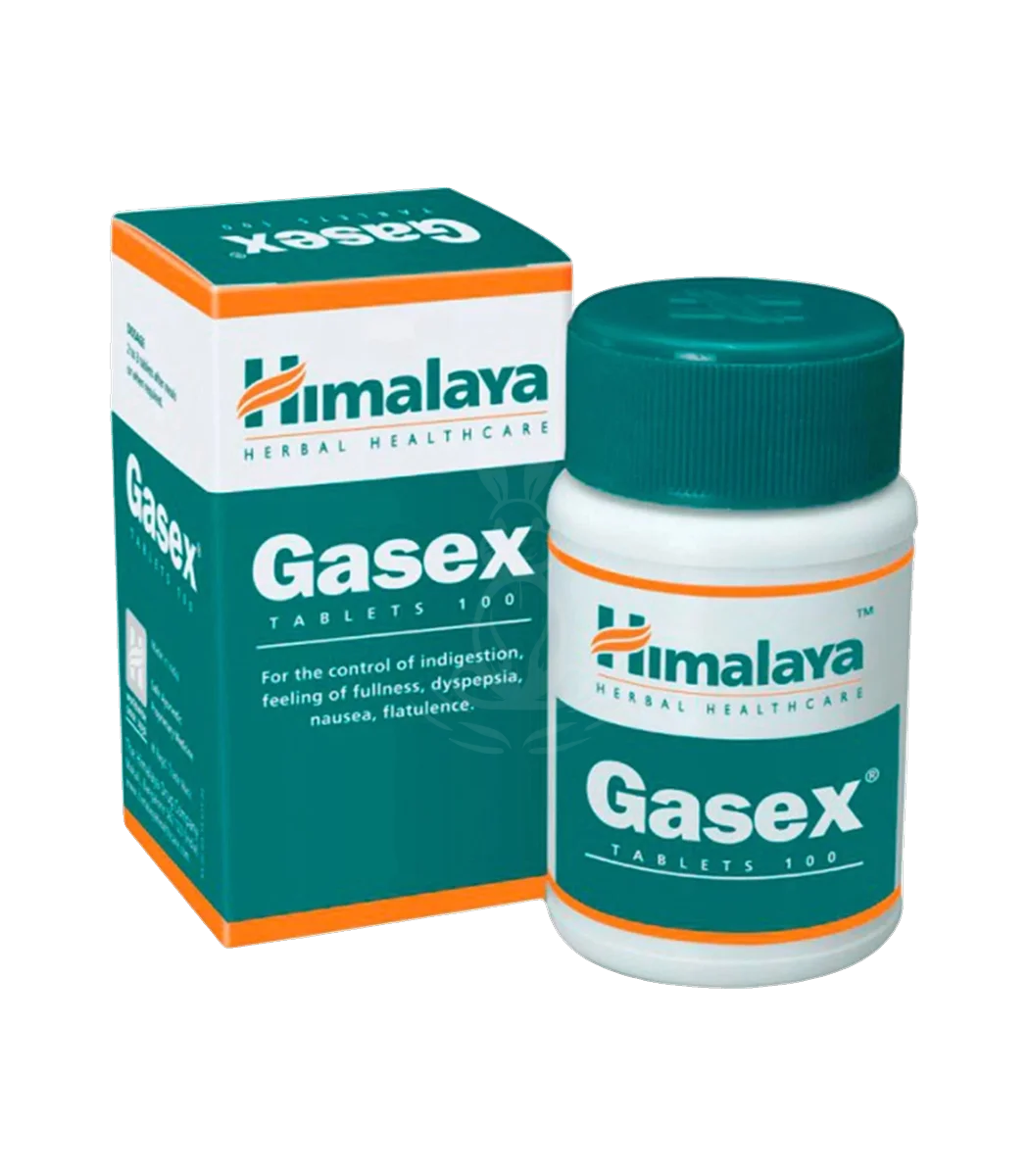 Gasex від Himalaya — аюрведичний препарат у таблетках для покращення травлення та усунення метеоризму, що поєднує класичні рослинні екстракти і кальцинові шельфові препарати для нейтралізації підвищеного газоутворення та поліпшення моторики кишечника. citeturn0search8turn0search2.