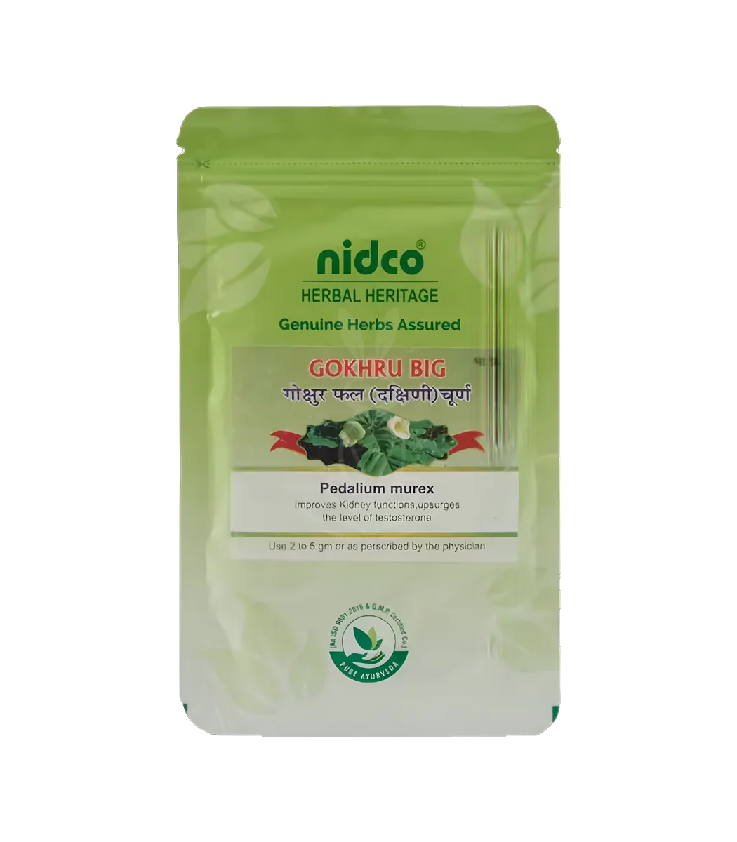 Гокшура (Tribulus terrestris) від Nidco — аюрведичний рослинний препарат у вигляді порошку, традиційно використовується для підтримки сечостатевої системи, нирок та загальної життєвої енергії. Препарат містить стандартизовані екстракти гокшури, що сприяють відновленню функцій та загальної витривалості організму.
