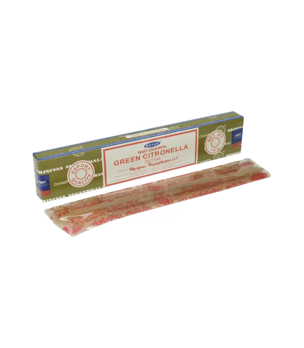 Green Citronella від Satya – це натуральні палички, створені для ароматерапії та освіження атмосфери. Вони наповнюють простір приємним ароматом цитронели, який має властивість відлякувати комах та створювати затишну атмосферу.