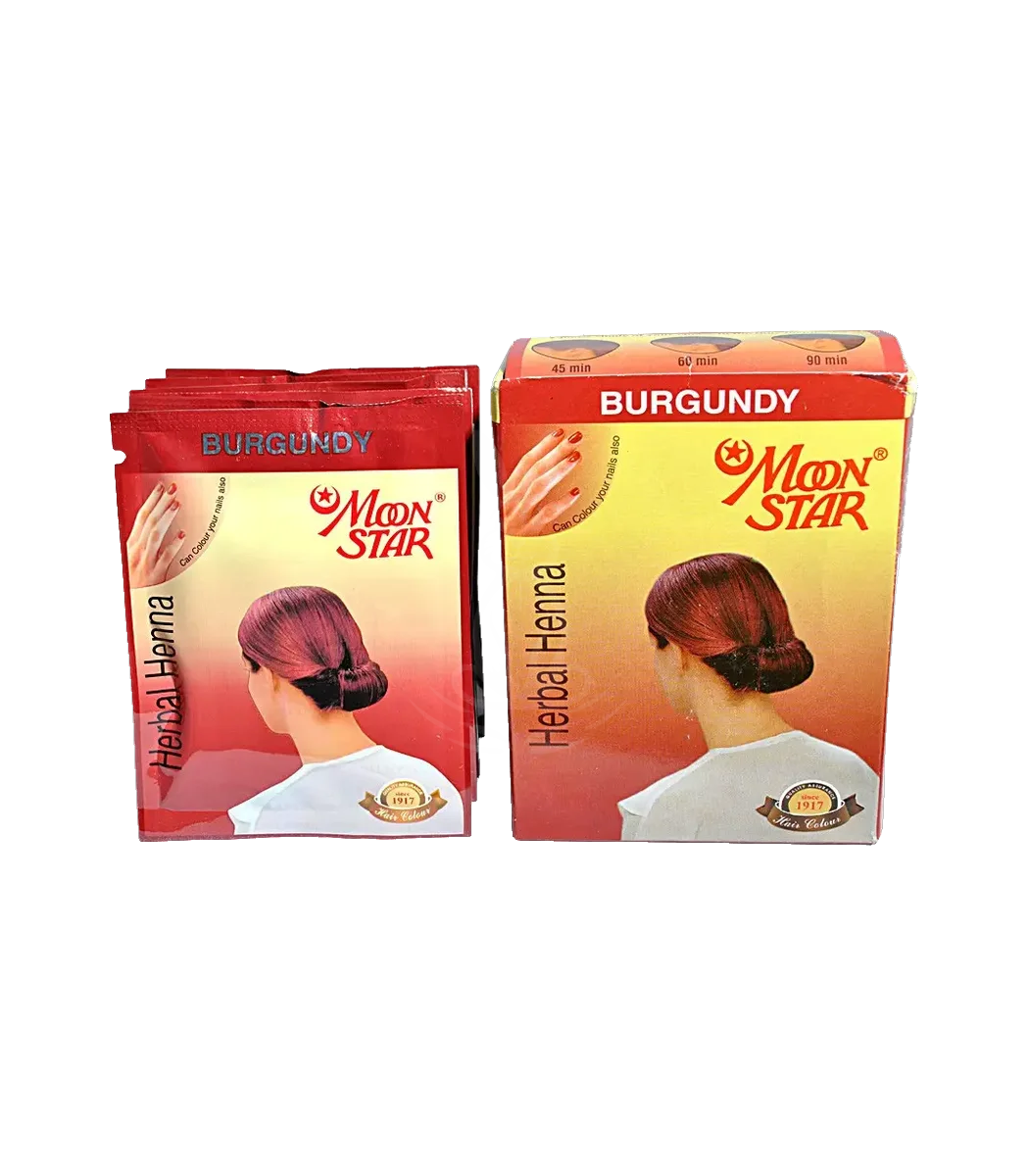 Фарба для волосся у відтінку Бургунд від бренду Moon Star – це високоякісний продукт, який надає волоссю насичений бордовий колір. Фарба забезпечує стійке покриття та блиск, живить волосся завдяки наявності натуральних компонентів.