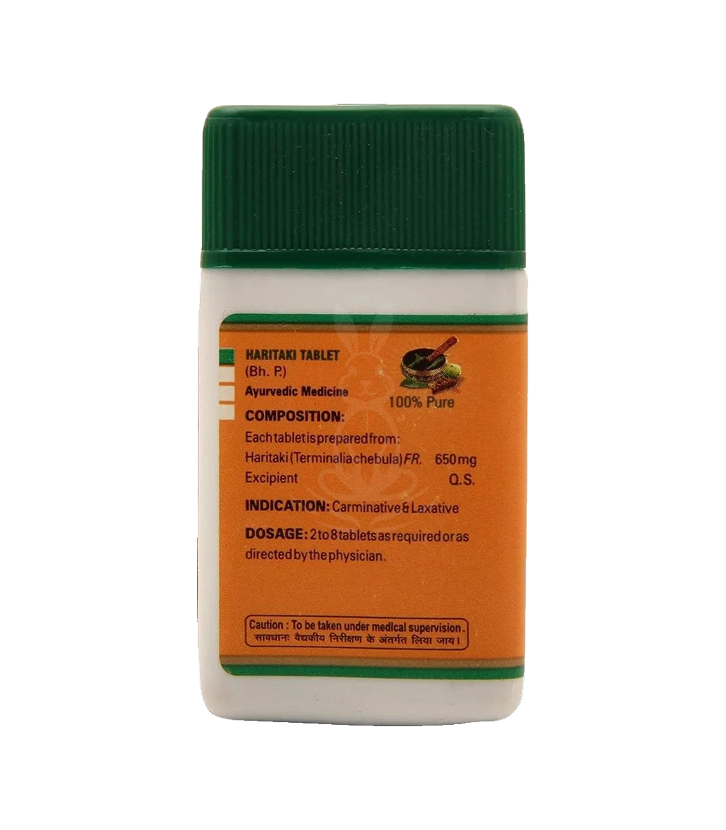 Харитаки (Haritaki, Terminalia chebula) — класична аюрведична трава, відома як потужний регулятор травлення і м’який проносний засіб (усуває закрепи). Сприяє покращенню перистальтики кишечника, нормалізації роботи шлунково - кишкового тракту та виведенню токсинів. Має антимікробні, протизапальні та антиоксидантні властивості, тонізує нервову систему, підтримує пам’ять та здоров’я серця. Використовується як расабаяна (омолоджувальний тоник), часто призначається при порушеннях Вата і Капха доша, сприяє загальному відновленню організму.