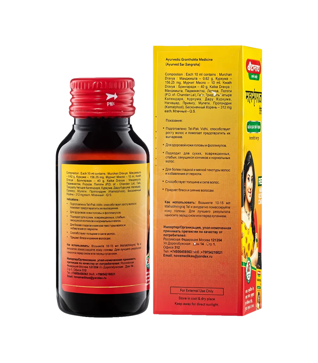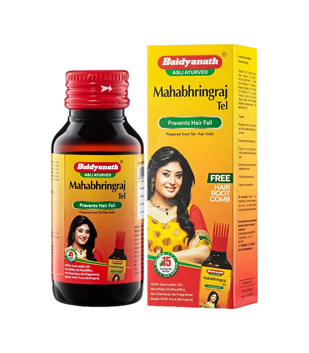 Махабрінгарадж масло від Baidyanath – це аюрведичне засіб, відоме своїми властивостями для зміцнення волосся та покращення стану шкіри голови. Це масло сприяє росту волосся, запобігає їх випаданню, знижує сивину та сухість шкіри голови.