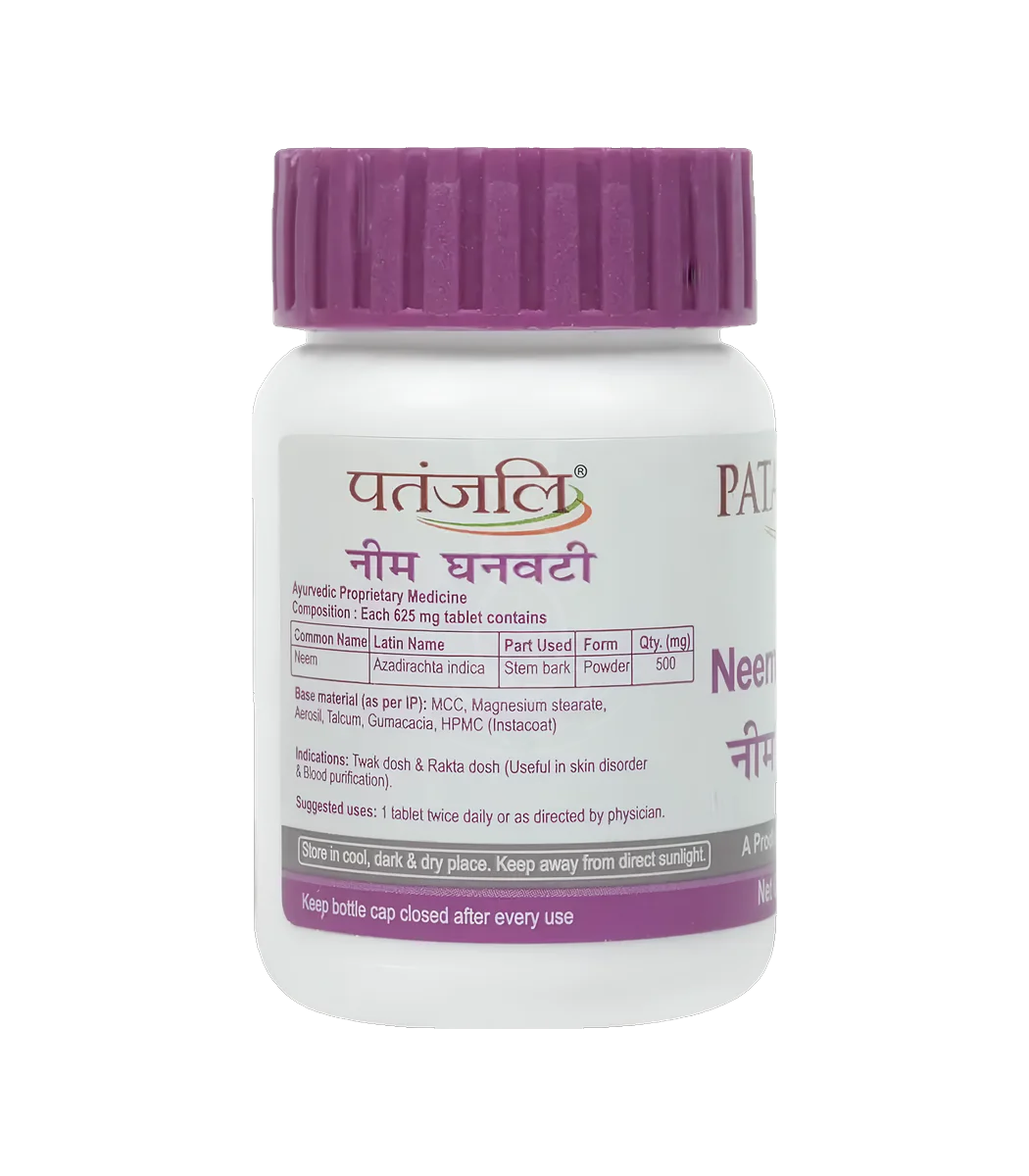 Нім Ган Вати від Patanjali – це аюрведичний засіб, виготовлений з екстракту листя нім, що має потужні антибактеріальні та антиоксидантні властивості. Він сприяє очищенню організму, підтримує здоров’я шкіри і зміцнює імунну систему.