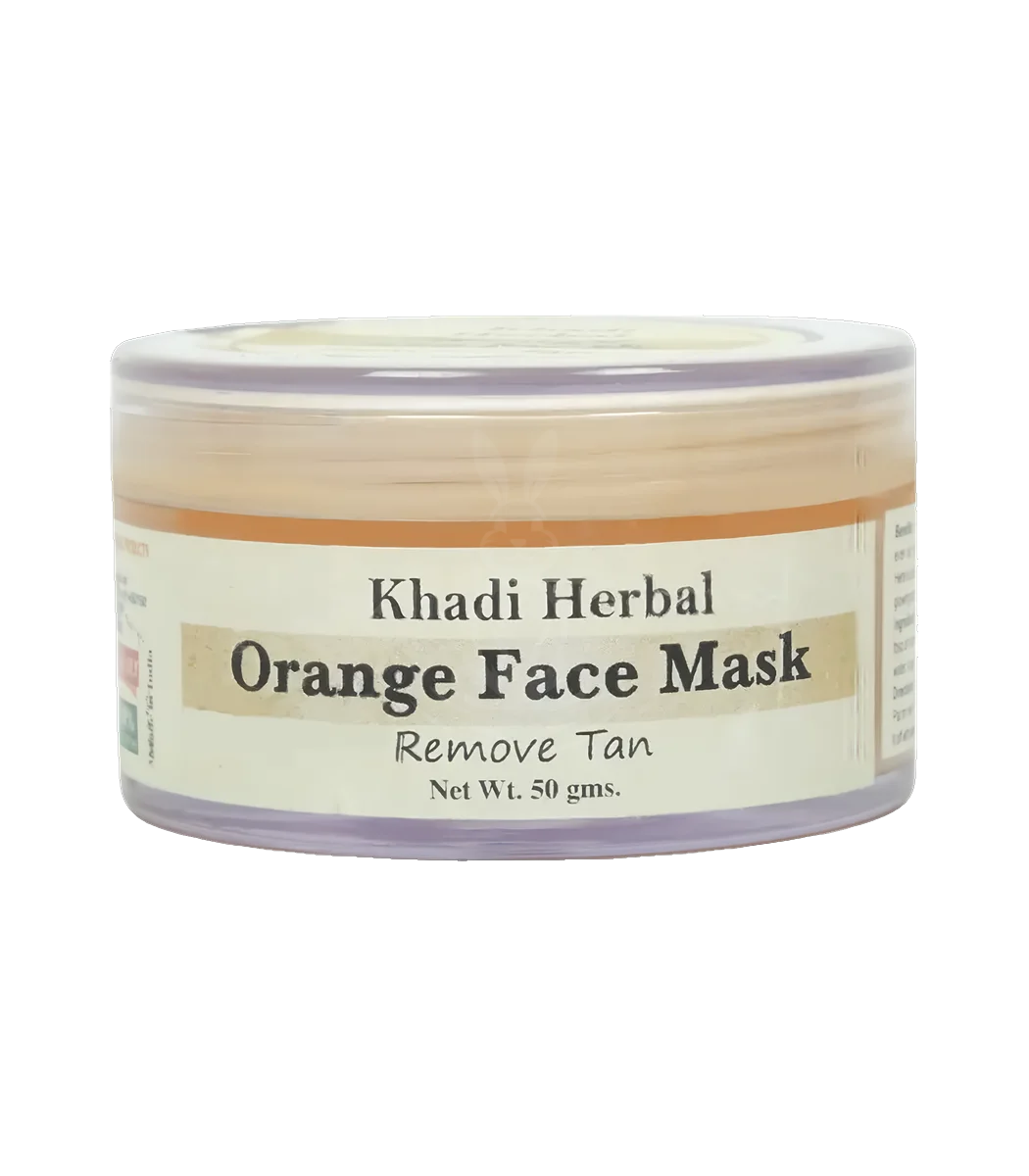 Orange Face Pack від Khadi — порошкова/глиняна маска для обличчя з екстрактом апельсина, призначена для освітлення, тонізації та освіження шкіри. Допомагає видаляти надлишок шкірного сала, м’яко відлущує омертвілі клітини та надає шкірі сяйва.