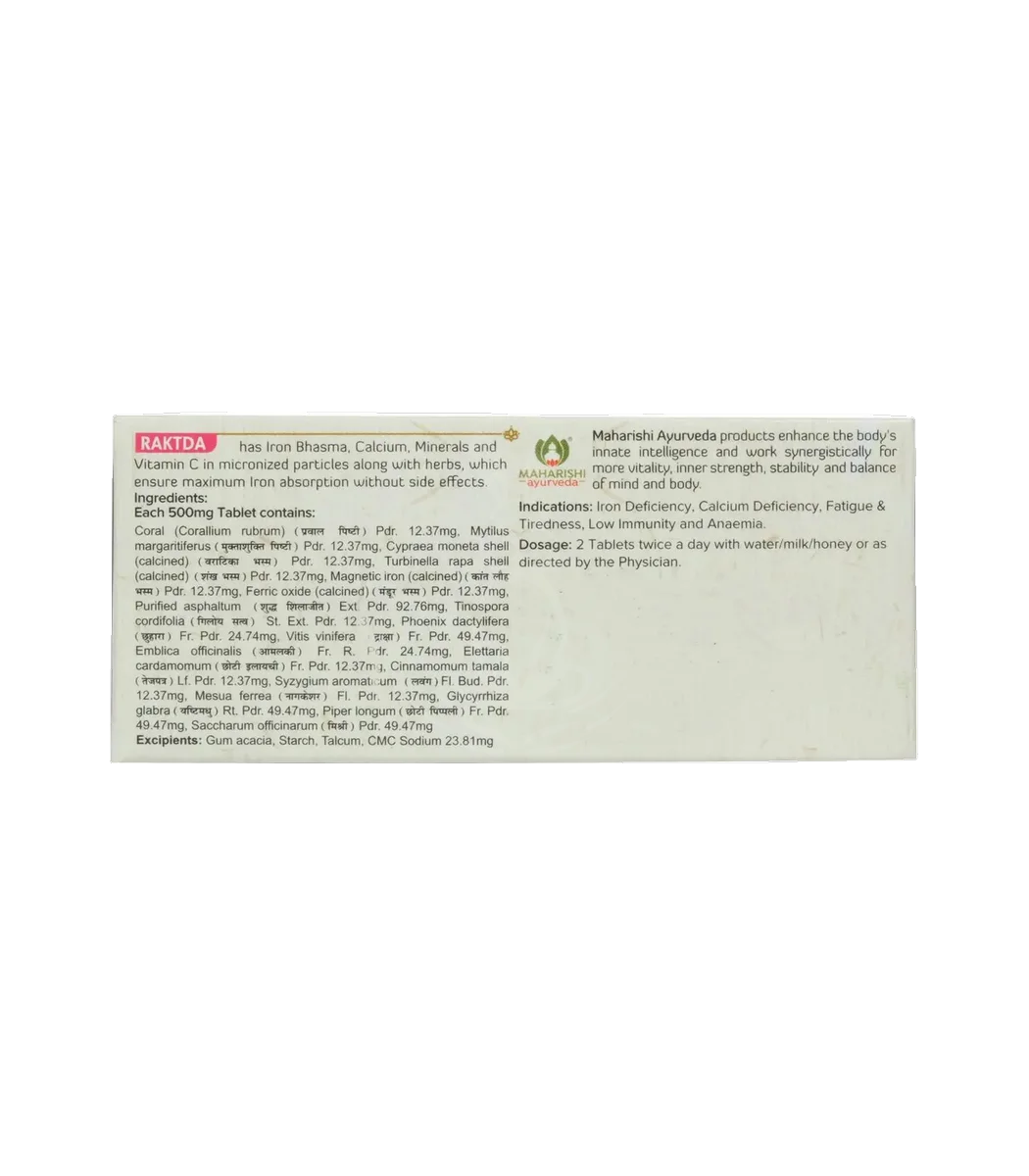 Raktda від Maharishi — аюрведичний препарат, який застосовується як кровоочищаючий і відновлювальний засіб. Формула спрямована на підтримку нормальної функції кровоносної системи, поліпшення стану шкіри та зниження запальних процесів в організмі.
