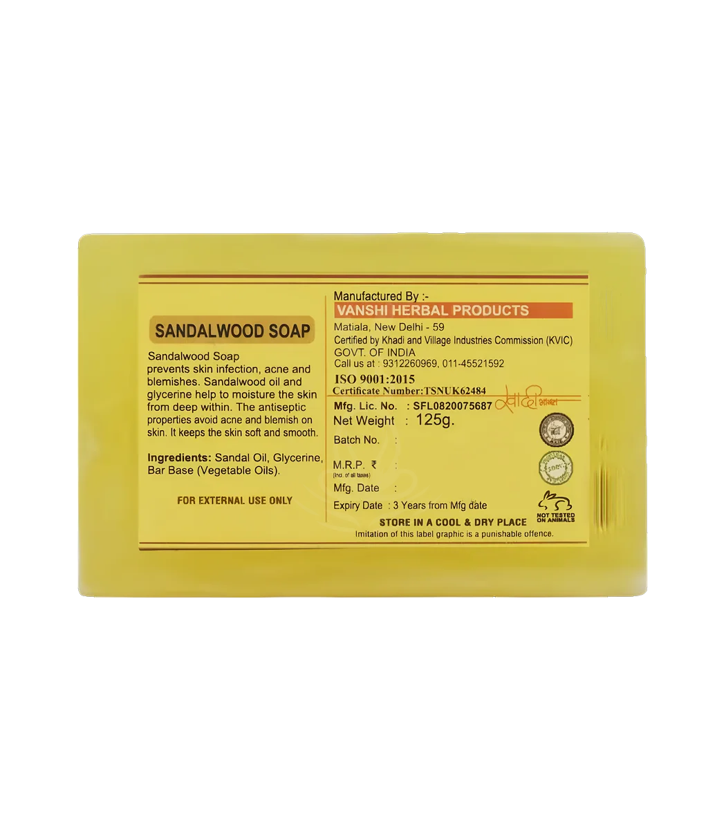 Sandalwood (Khadi) — натуральне мило на основі сандалового дерева, розроблене для ніжного очищення та догляду за шкірою. М’яка формула підходить для щоденного використання, допомагає зберегти природний вологий баланс шкіри та надає приємний, тонкий аромат сандалу.