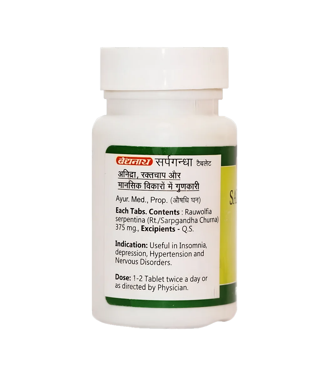 Сарпагандха від Baidyanath — аюрведичний препарат, виготовлений на основі рослини Rauwolfia serpentina, відомої своїми потужними заспокійливими та антигіпертензивними властивостями. Препарат використовується для нормалізації тиску, покращення сну та зняття нервової напруги.
