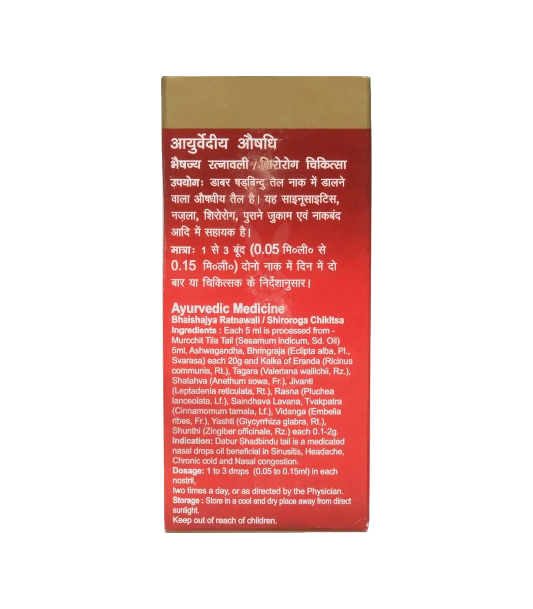Shadbindu від Dabur – це натуральне масляне засіб для назального застосування, створене за аюрведичними традиціями. Воно допомагає зволожити та очистити носову порожнину, полегшити дихання та зміцнити імунітет. Використовується для профілактики та лікування проблем з верхніми дихальними шляхами.
