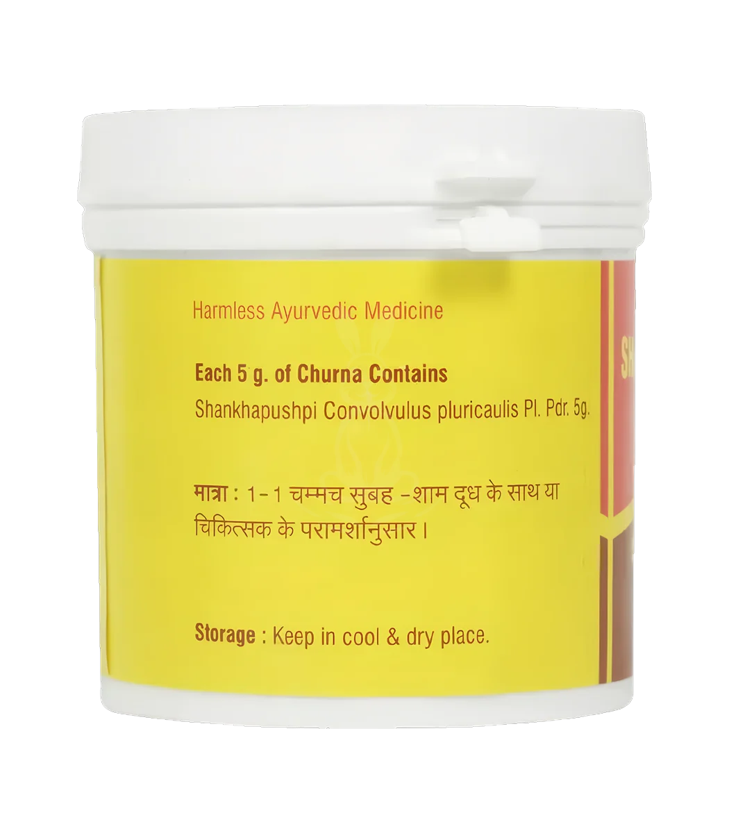 Shankhapushpi Churna від Vyas – це аюрведичний порошок, відомий своїми властивостями покращувати когнітивні здібності та стимулювати роботу мозку. Цей препарат сприяє поліпшенню концентрації, пам’яті, а також зменшенню психічного стресу та тривожності.