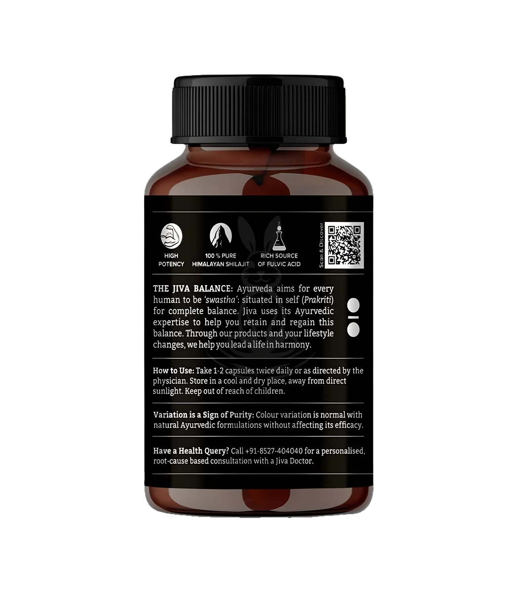 Shilajit Pure від Jiva — це концентрований природний екстракт (мумиє/шиладжит), традиційний аюрведичний засіб, що застосовується як загальнозміцнювальний і відновлювальний препарат. Має репутацію підсилювача енергії, сприяє відновленню життєвих сил та підтримці обміну речовин.