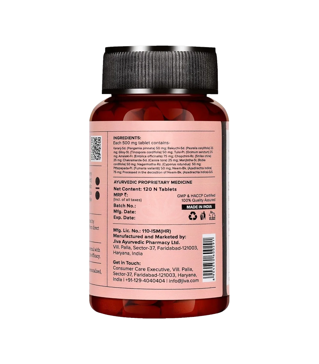 Skin Fit від Jiva — це аюрведичний комплекс у таблетках, розроблений для підтримки здоров’я шкіри, усунення запальних процесів та покращення кольору обличчя. Формула поєднує традиційні трави, що допомагають детоксикації крові, зменшенню висипів та відновленню природного блиску шкіри.