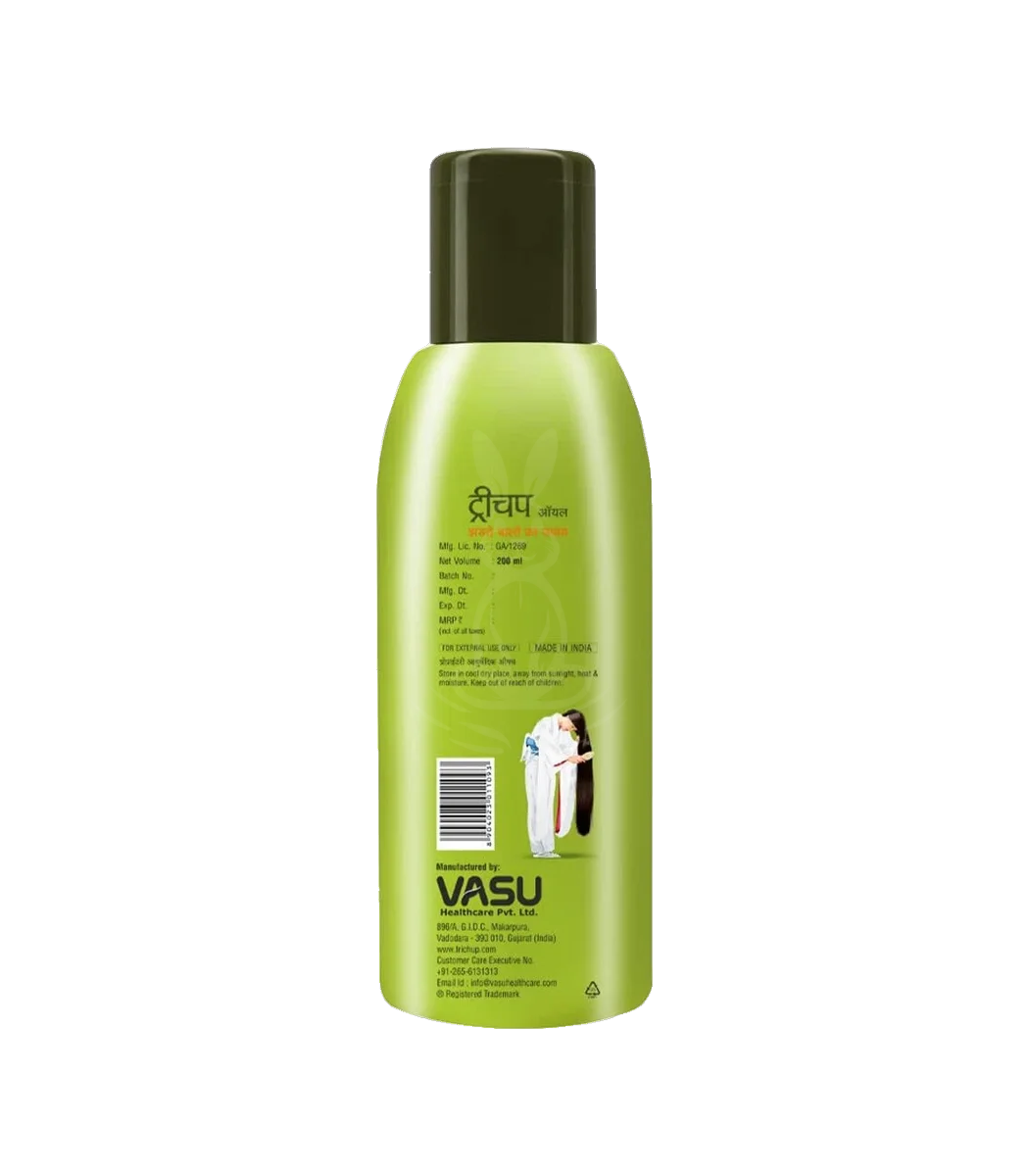Trichub Oil від Vasu — аюрведичне масло для догляду за волоссям, спеціально розроблене для зменшення випадіння волосся, зміцнення волосяних фолікулів і покращення загального стану шкіри голови. Містить трав’яні екстракти та олії, що живлять коріння і стимулюють зростання волосся.
