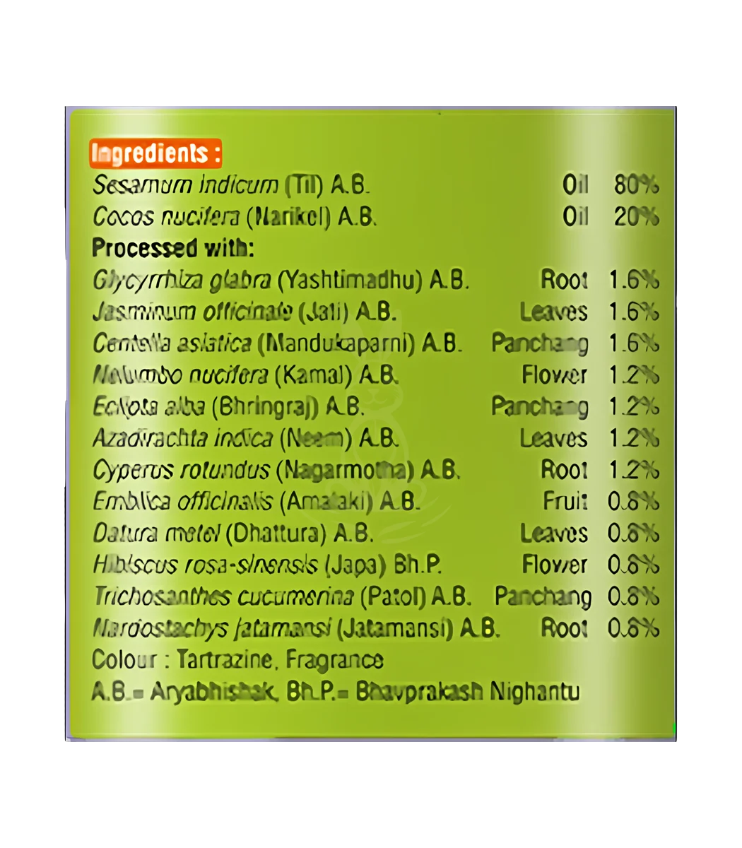 - Поєднання базових олій (кунжутна, кокосова) та традиційних аюрведичних трав