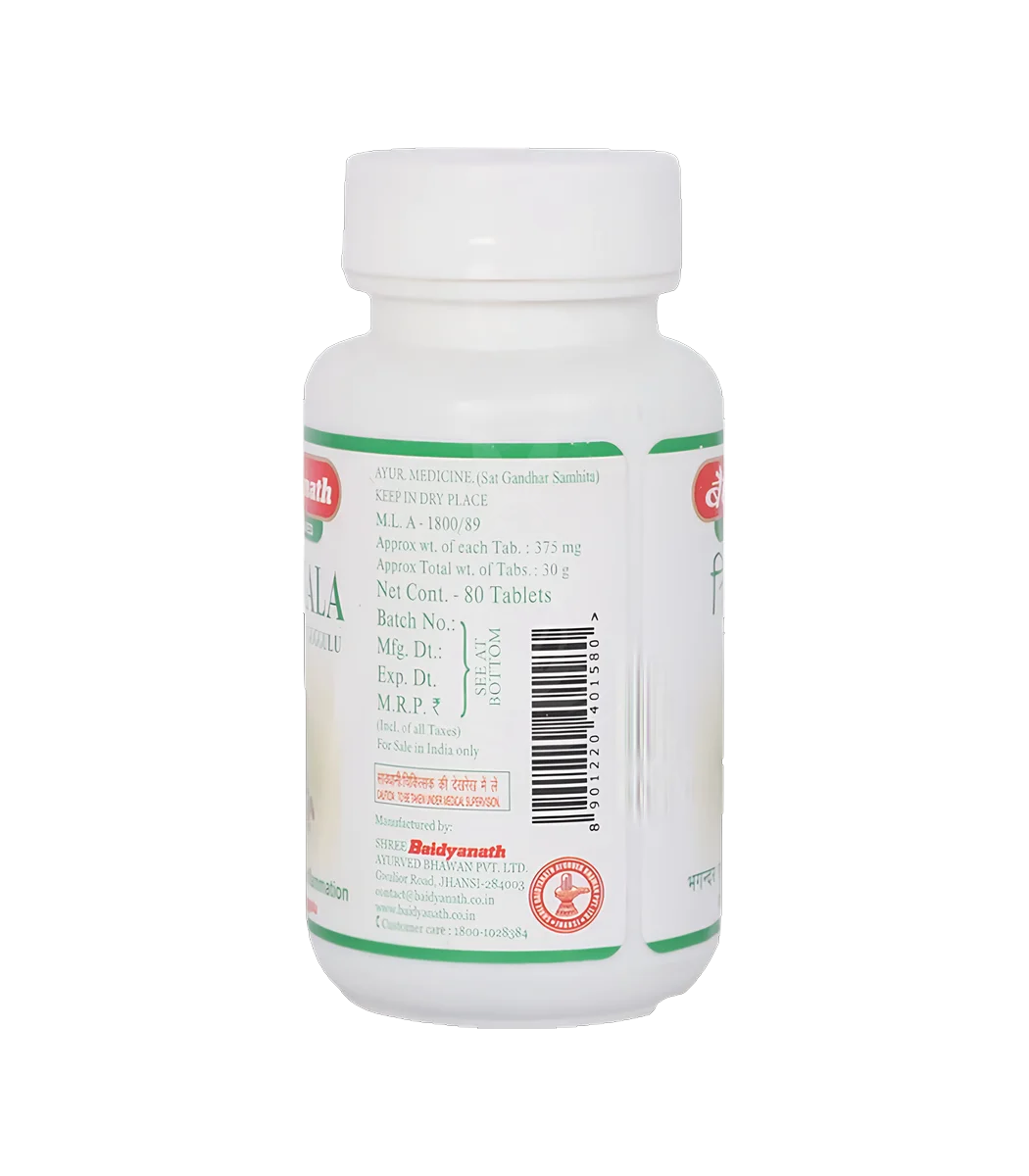 Triphala Guggul від Baidyanath — аюрведичний препарат на основі поєднання Трифали та Гуггул, який традиційно використовується для покращення травлення, очищення організму та підтримки обміну речовин. Комбінація діє як м’який м’якотний слабкий засіб, сприяє детоксикації та допомагає нормалізувати роботу шлунково-кишкового тракту.