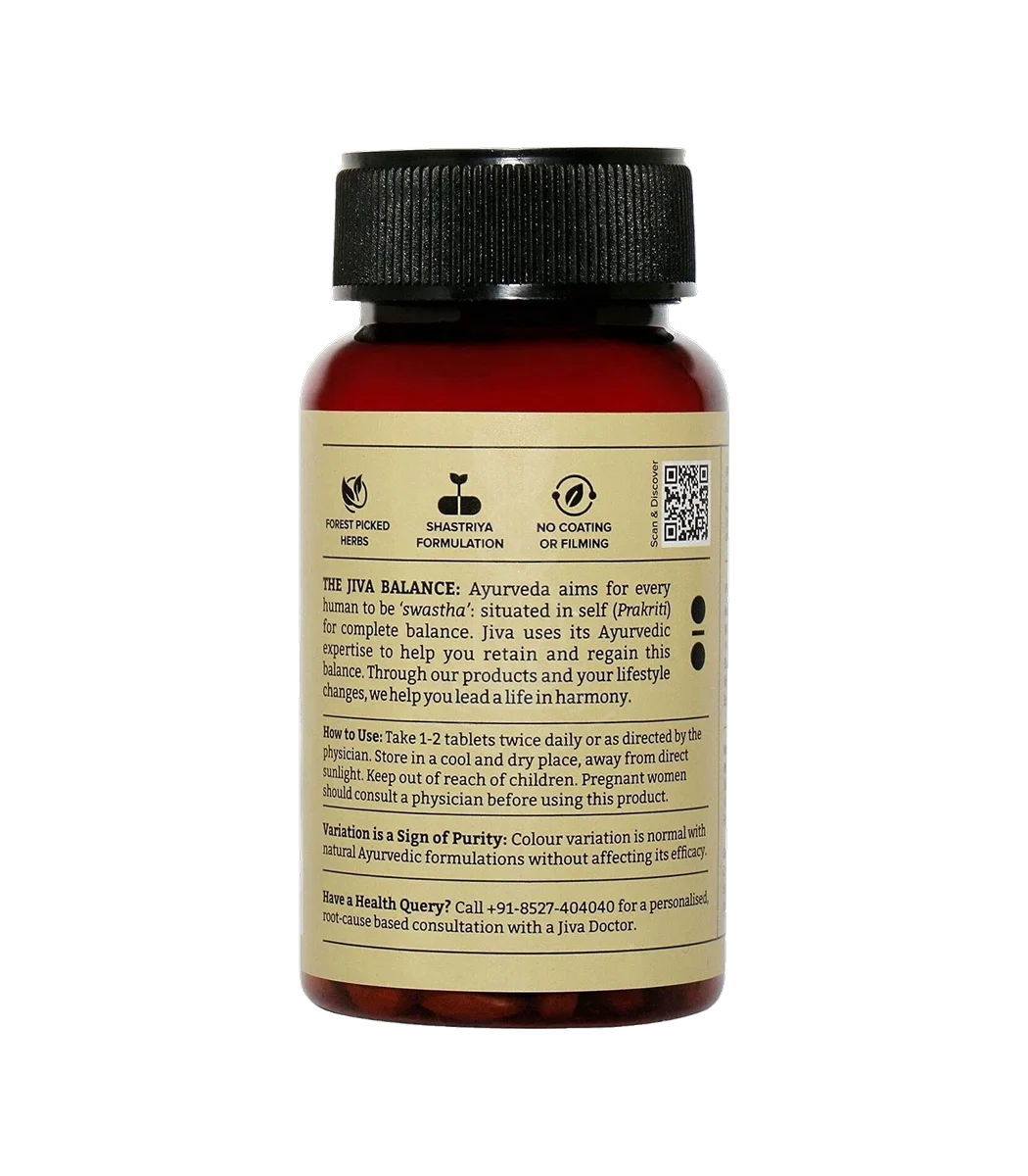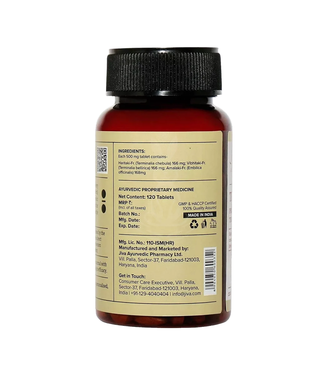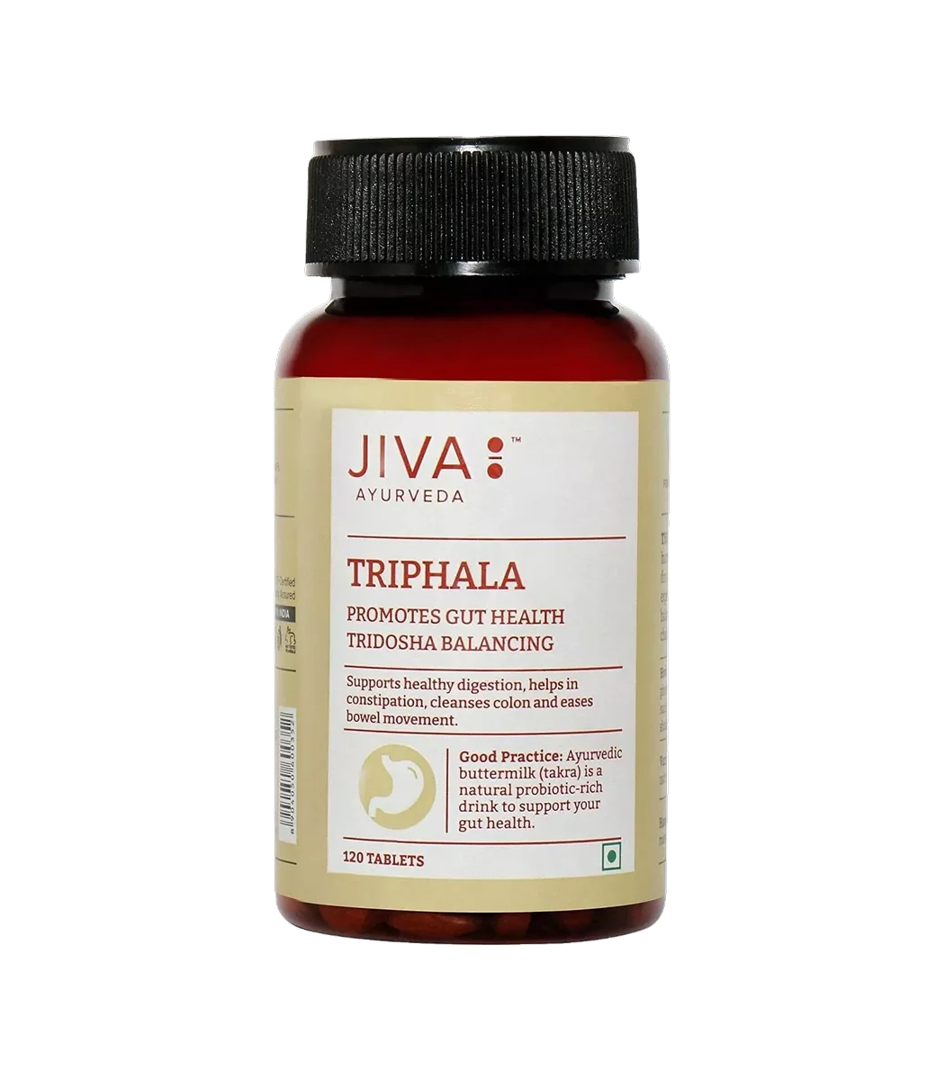 Triphala від Jiva — класична аюрведична формула у формі таблеток, що складається з трьох плодів (Амалаки, Бхибхітаки, Харітаки). Використовується для підтримки травлення, м’якої детоксикації та загального відновлення систем організму.