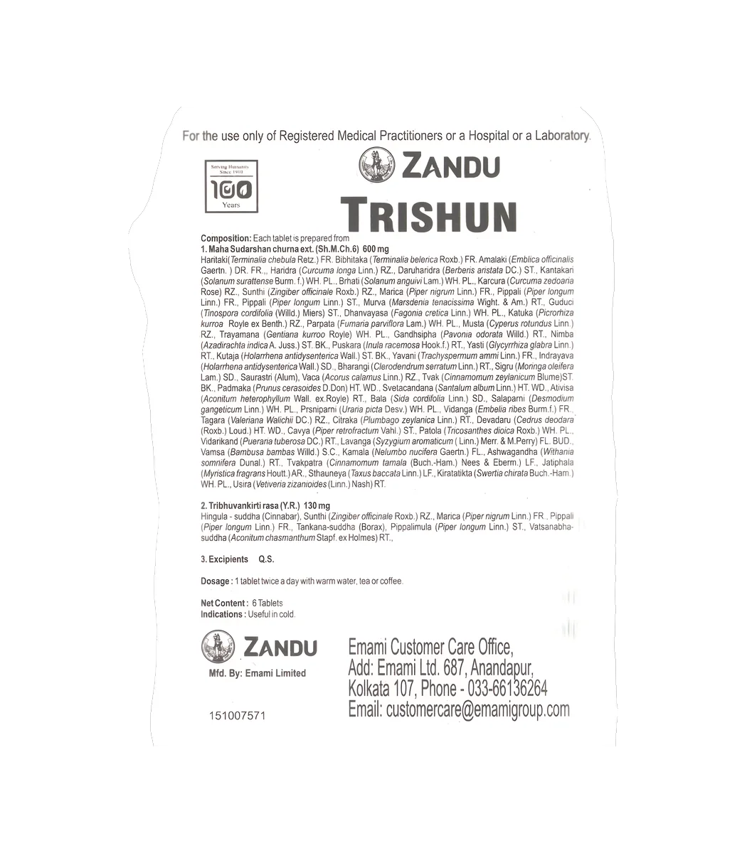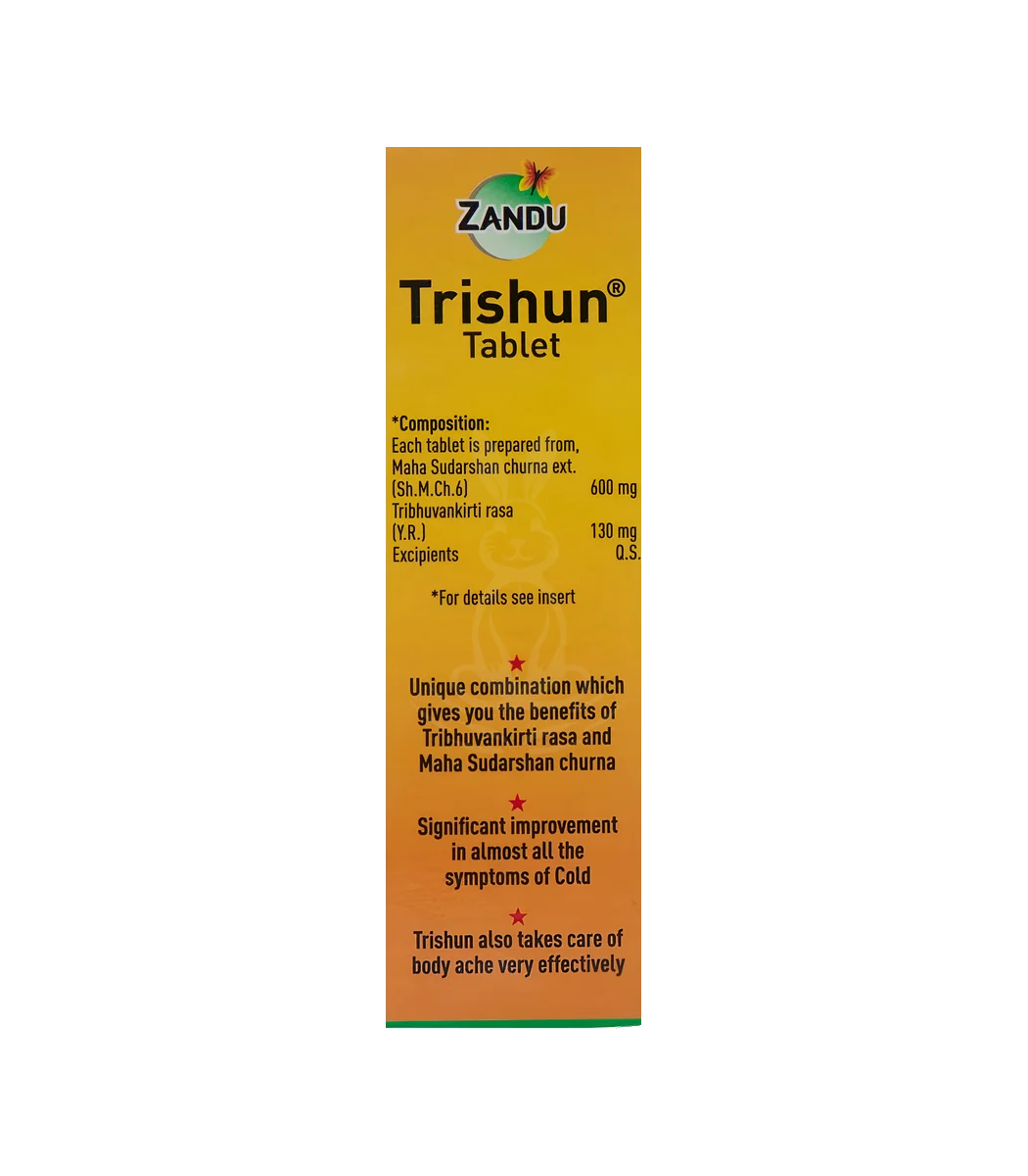 Трішун від Zandu – це традиційний аюрведичний препарат, що використовується для зміцнення імунітету та захисту від застуд і грипу. Він містить натуральні інгредієнти, що підтримують природні захисні механізми організму, зменшують симптоми застуди та сприяють швидкому одужанню.